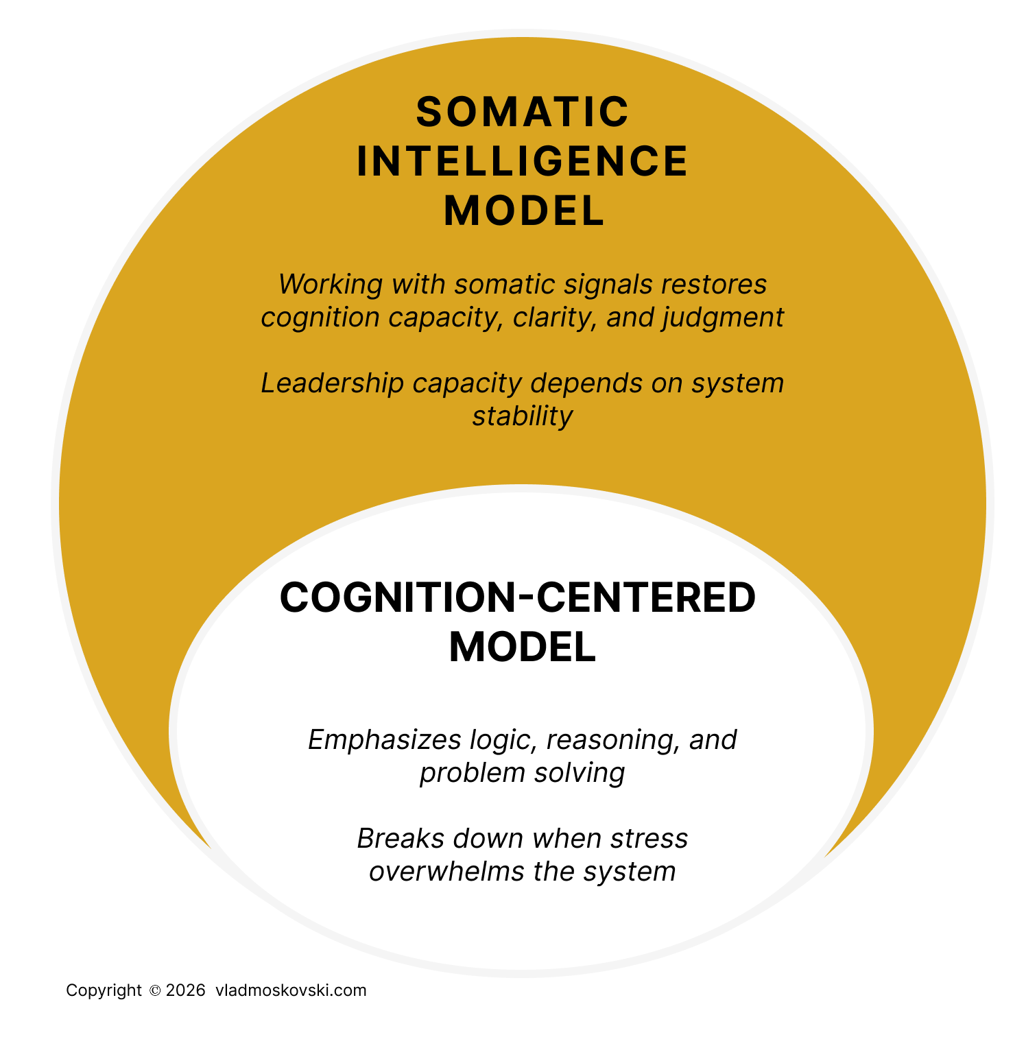The models below show why leadership capacity, the ability to stay present, think clearly, and act deliberately, degrades under pressure. Somatic Intelligence helps restore that capacity.